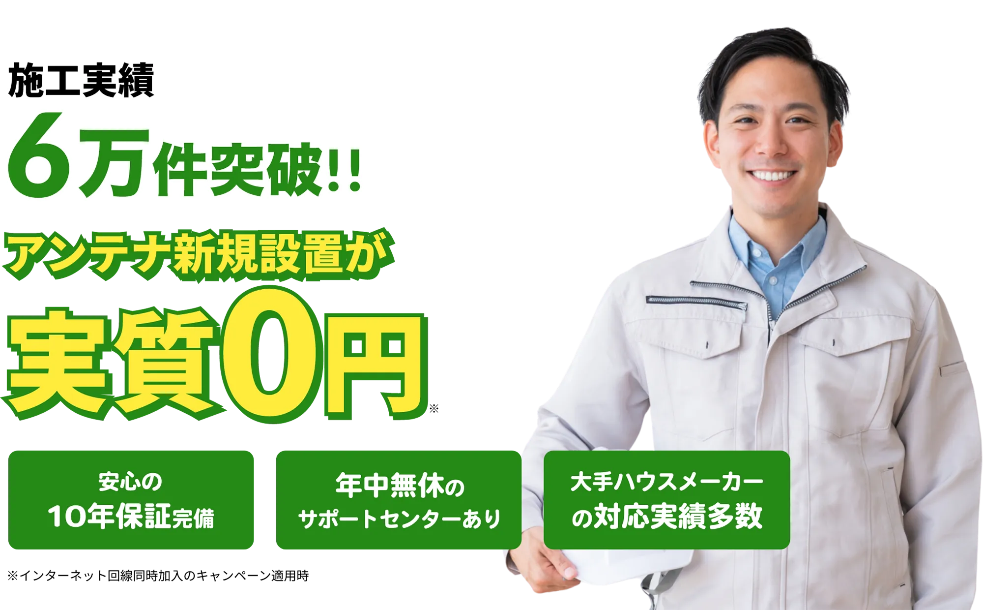 アンテナ代は6万円ほどしましたが、キャンペーンでのキャッシュバックもあり実質0円に。